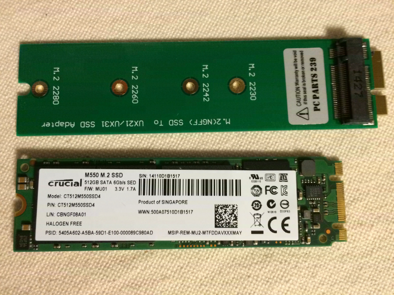 前置きとして、以前にも書いてるけどZenbook UX21/31に搭載されているのはSandiskのU100もしくはADATAのXM11となっている。この2種類のSSD、実は特殊も特殊、コネクタのピン数的にはmSATAと同じなのだがなんと配列が違う(らしい)というニッチの極みな仕様。ASUSの中の人が一体どんな面持ちでこの配列のSSDを採用したのかは知るべくもないがとりあえず猫のうんこ踏めという感じである。発売前の時点でmSATAの規格は大体決まっていたはずなのに敢えてである。もう一回猫のうんこ踏め。