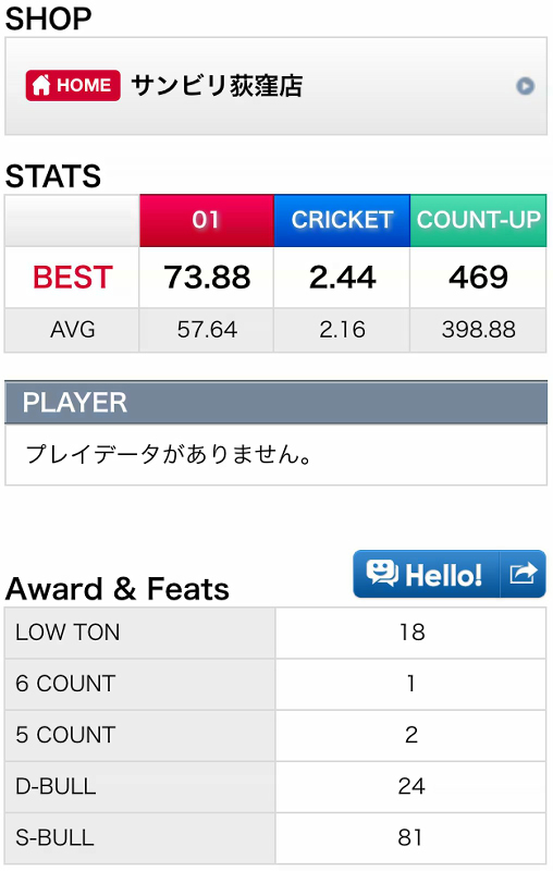 グランボードで練習している中で幾つか気になる所があったのでtwitterで公式アカウントに要望として放り投げてみた。レスポンスが早いのは良いなー。例えば、SETTING→友達登録で設定したIDは(ダーツ用スマホを家族共用とするため)アプリ終了後も保持したいとか、ゲーム選択後の操作説明をアプリ起動後初回のみか非表示にしたいとか。あとバグとして701が20ROUND後も続くことがある、とか。このバグは買った当初から気になっていて、どういう条件でそうなるんだろ、と思ったら…最終ラウンド(R20)でBUSTが発生した際に起こるようだ。シチュエーション的に結構ありそうだし、ちょっとお粗末ではなかろうか…
